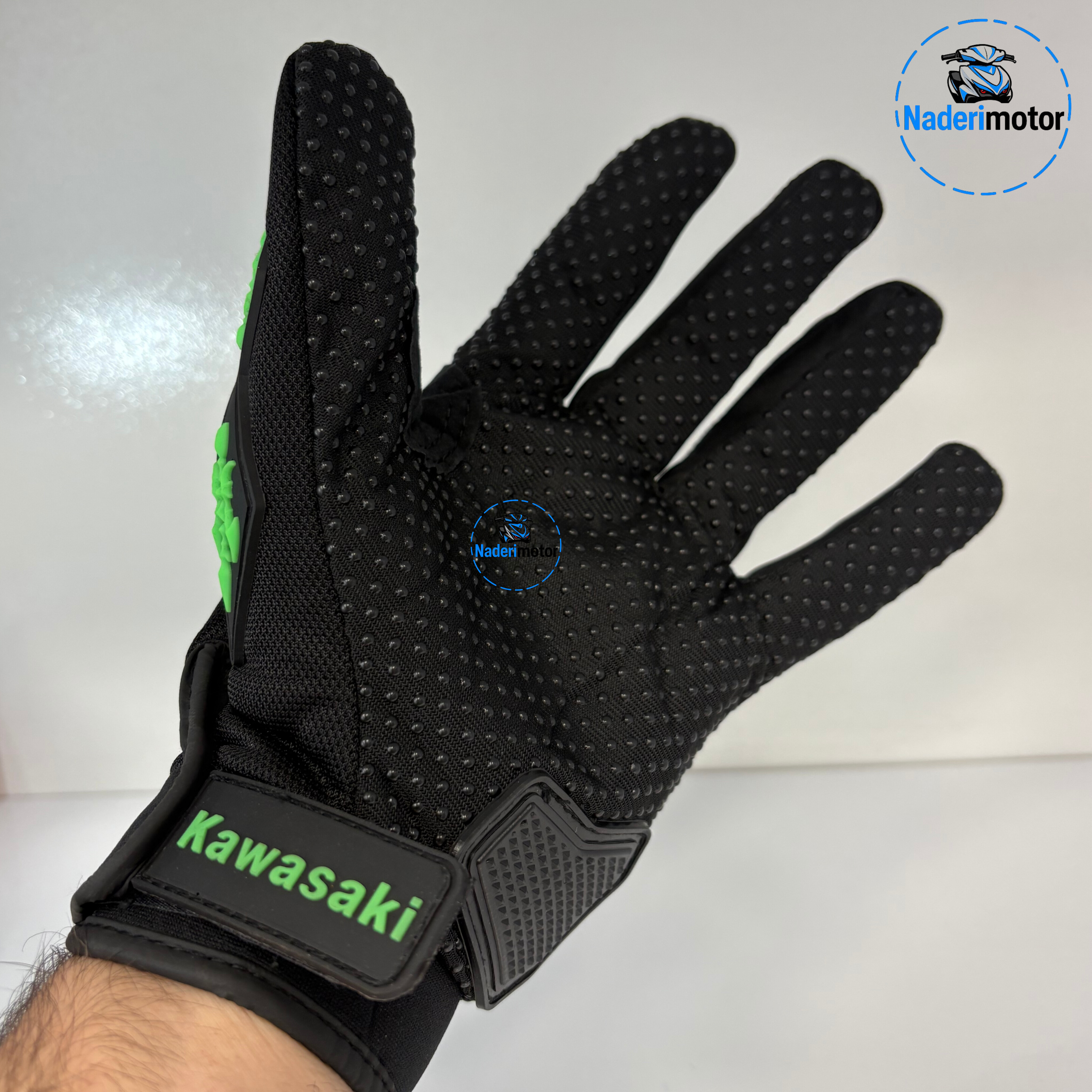 دستکش مشکی سبز ضربه گیر دار موتور سواری